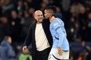 赢下阿森纳后,卡里克第一时间向他的教练团队表示祝贺